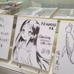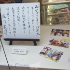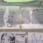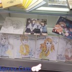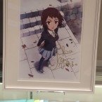 Juste après être passé à la caisse, nous avons été accueillis par une armée de PLV provenant de divers personnages issus de séries produites par le studio et en passant devant, l’une d’elles à retenu mon attention puisqu’il s’agissait de Yukina Shirahane, l’héroïne de la dernière production de P.A. Works qui verra le jour en 2016 sous le nom de Kuromukuro, celle-ci avait été dédicacé par sa doubleuse (M.A.O.), je ne sais pas vous, mais j’adore ce genre de petit détail !
