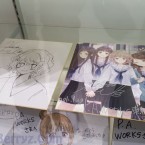 Tel des charognards en plein désert et surtout encore sous l’effet du buff « comiket », nous nous sommes lancés sur les rayonnages à moitié vide et rempli de petit carton avec ce douloureux message « SOLD OUT » en compagnie de Japonais qui étaient plus ou moins dans le même état d’esprit que nous… Il faut dire que nous sommes arrivés pile le jour de la réouverture de cette collaboration qui avait fait porte close pendant 5 jours pour cause de fête de fin d’année. Après avoir empoigné stores, sweat, tote bag et clear file aux couleurs des différentes séries produites par le studio et réduire par la même occasion les pv de nos portefeuilles respectifs, notre âme de collectionneur étant enfin apaisé par ces quelques achats, nous avons pu repartir paisiblement dans la partie consacrée à l’exposition.
