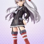 On reconnait bien là tout les détails qui font le charme de Amatsukaze, sa longue chevelure, ses stockings et que dire de ses porte-jarretelles stylisé qui remonte jusqu’à son cou, ses derniers étant apparents sous la transparence de sa veste cachant se qui doit être caché. Ce petit coté coquin sera parfaitement dosé avec ce petit air légèrement hautain qu’elle nous fait, ce petit croc me laisse bien supposer qu’elle joue dans la cour des Tsundere et pour une fois, ce ne serait pas pour me déplaire ! Bien sure, son fidèle Rensouhou chan sera présent lui aussi, il pourra être enlevé à votre guise, tout comme son équipement.