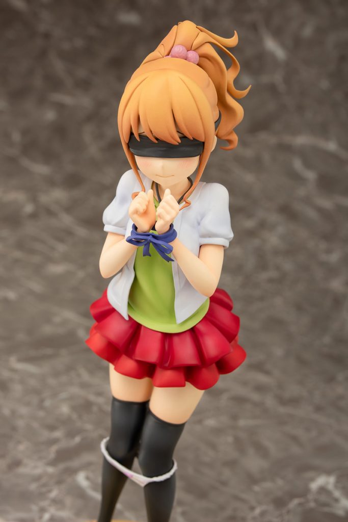 PLUM a joué le grand jeu sur cette adaptation de Megumi en nous proposant deux méthodes d’expositions dans le packaging. Vous pourrez ainsi selon votre envie l’exposer avec un visage gêné par la situation de se faire attacher les mains ou lui mettre le second visage avec ses yeux bandés et sa culotte qui descend jusqu’à ses genoux lors de la scène où Eromanga Sensei la dessine.